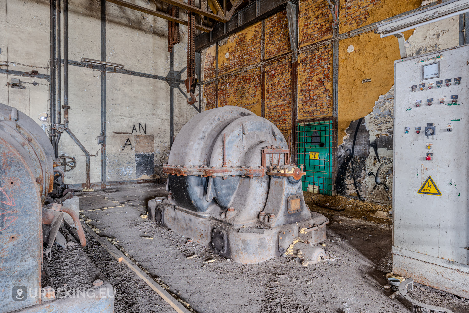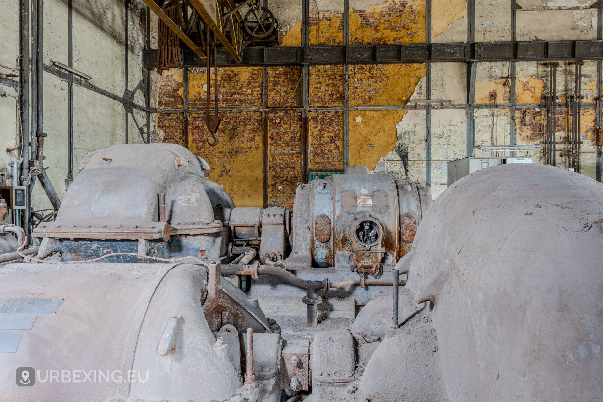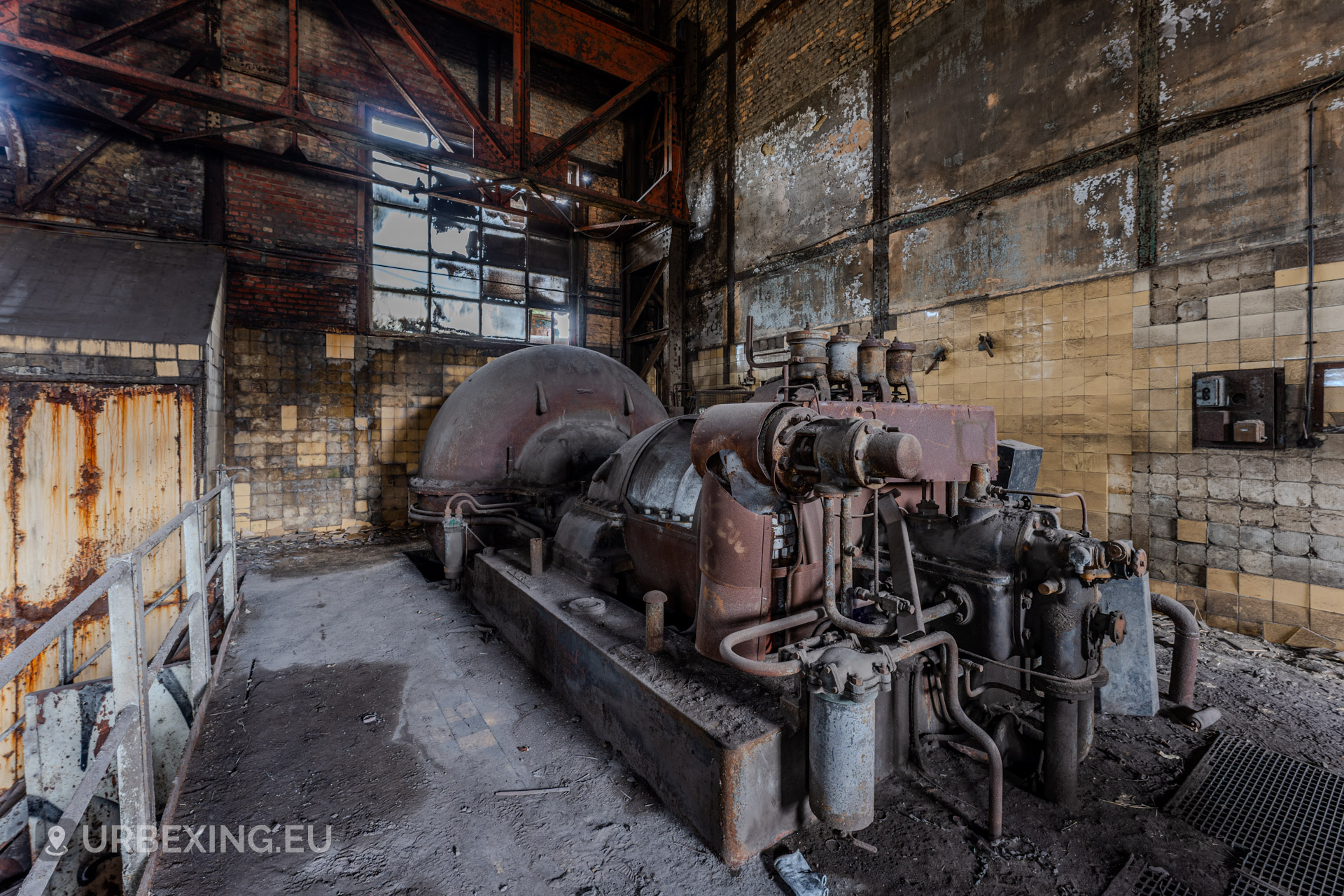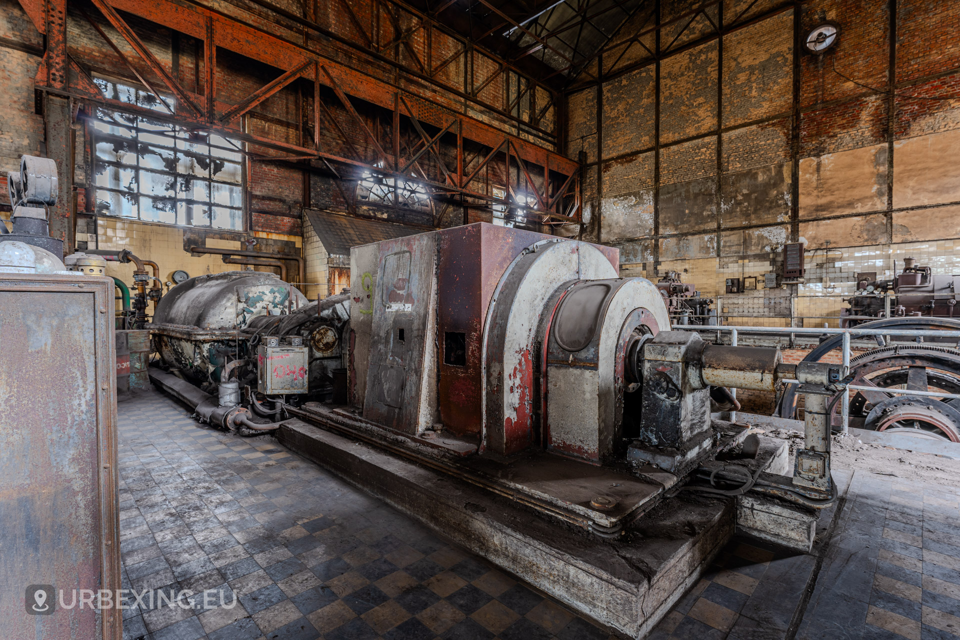 Entering the main hall feels like stepping back into the industrial age. Turbines still stand in place, their iron frames now heavy with rust and patina. Rare rotary converters; once critical for DC power generation; dominate the space, creating a steampunk-like atmosphere.