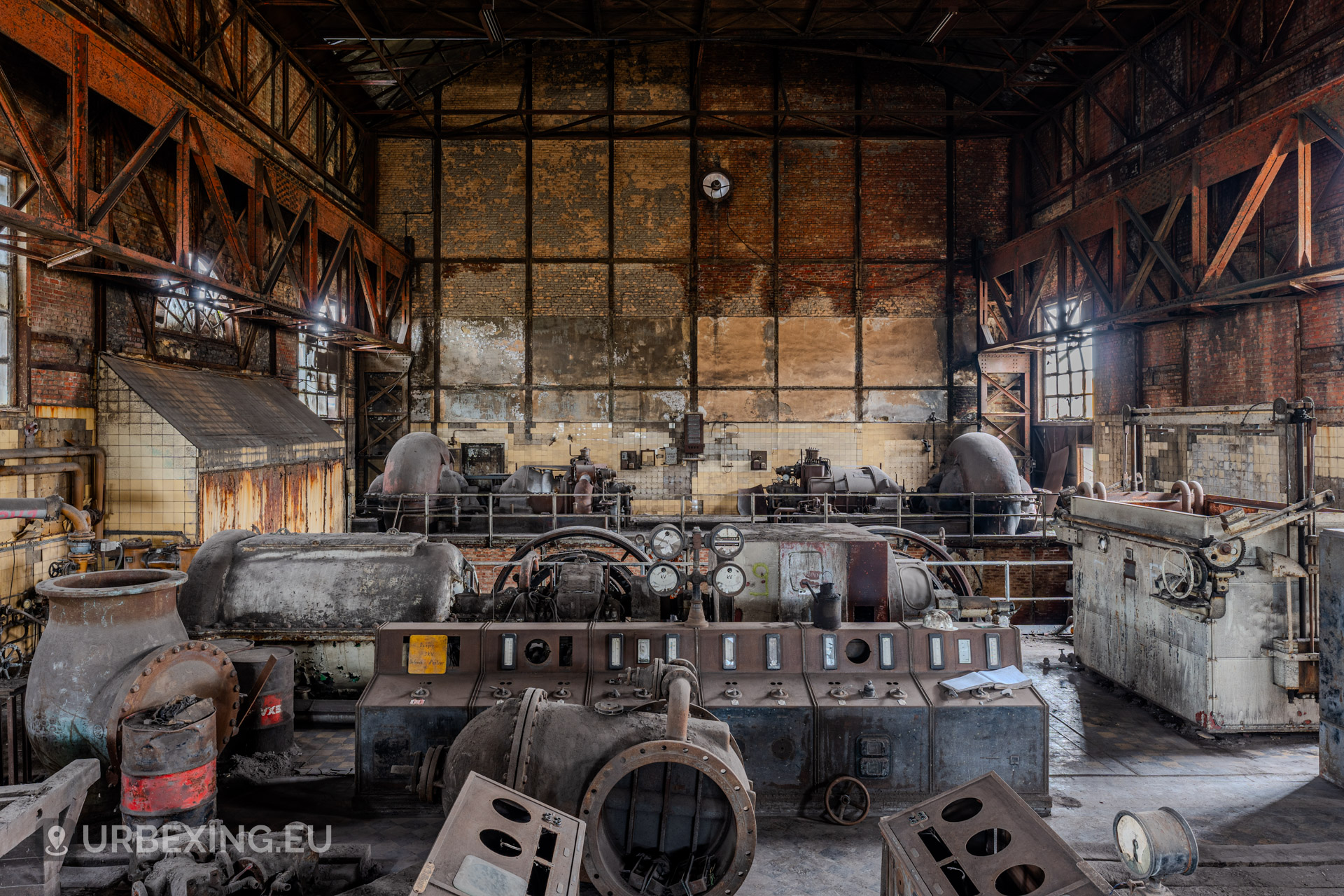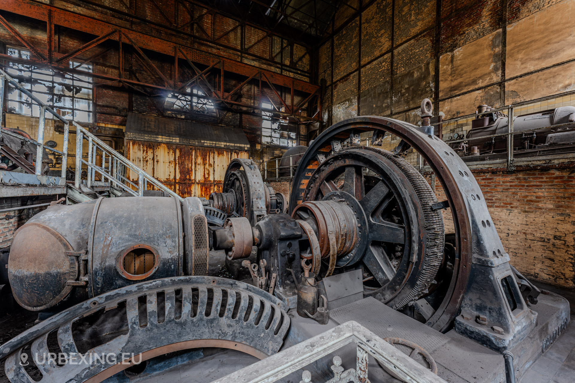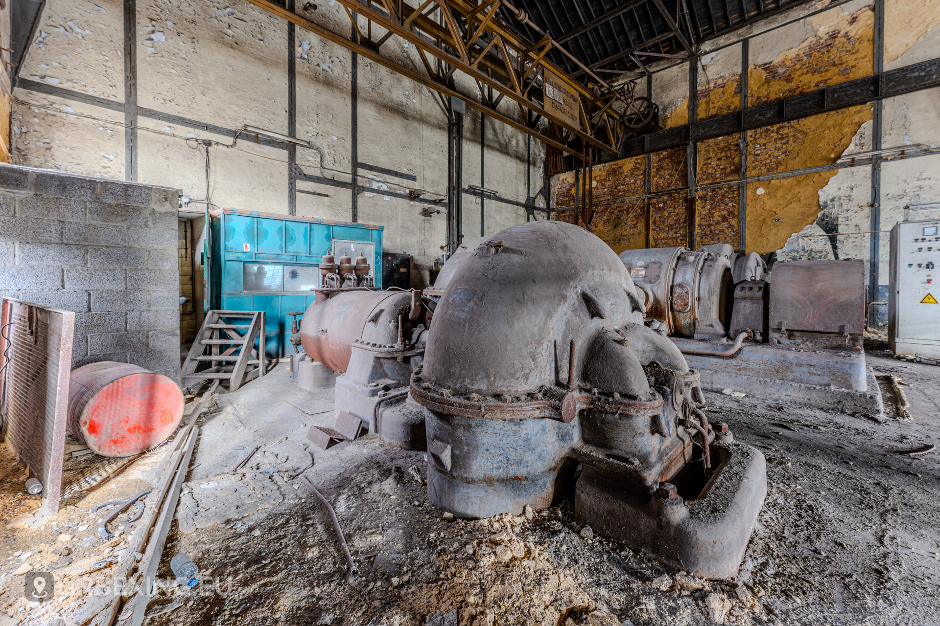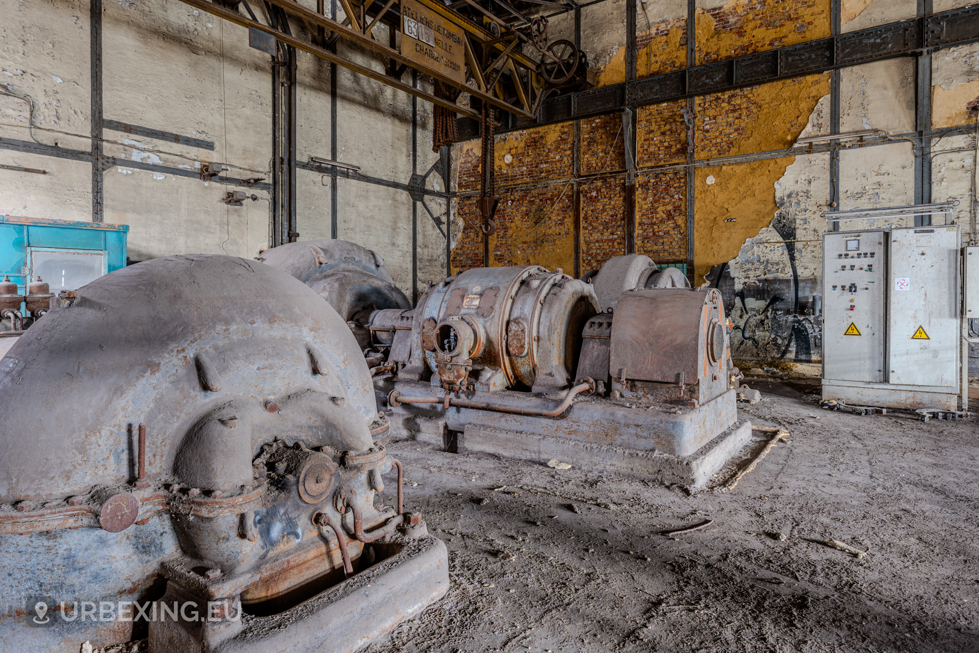 Entering the main hall feels like stepping back into the industrial age. Turbines still stand in place, their iron frames now heavy with rust and patina. Rare rotary converters; once critical for DC power generation; dominate the space, creating a steampunk-like atmosphere.