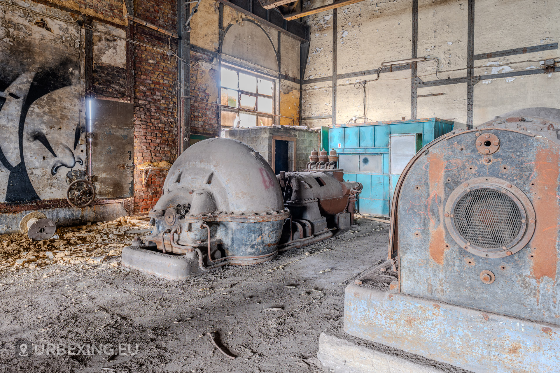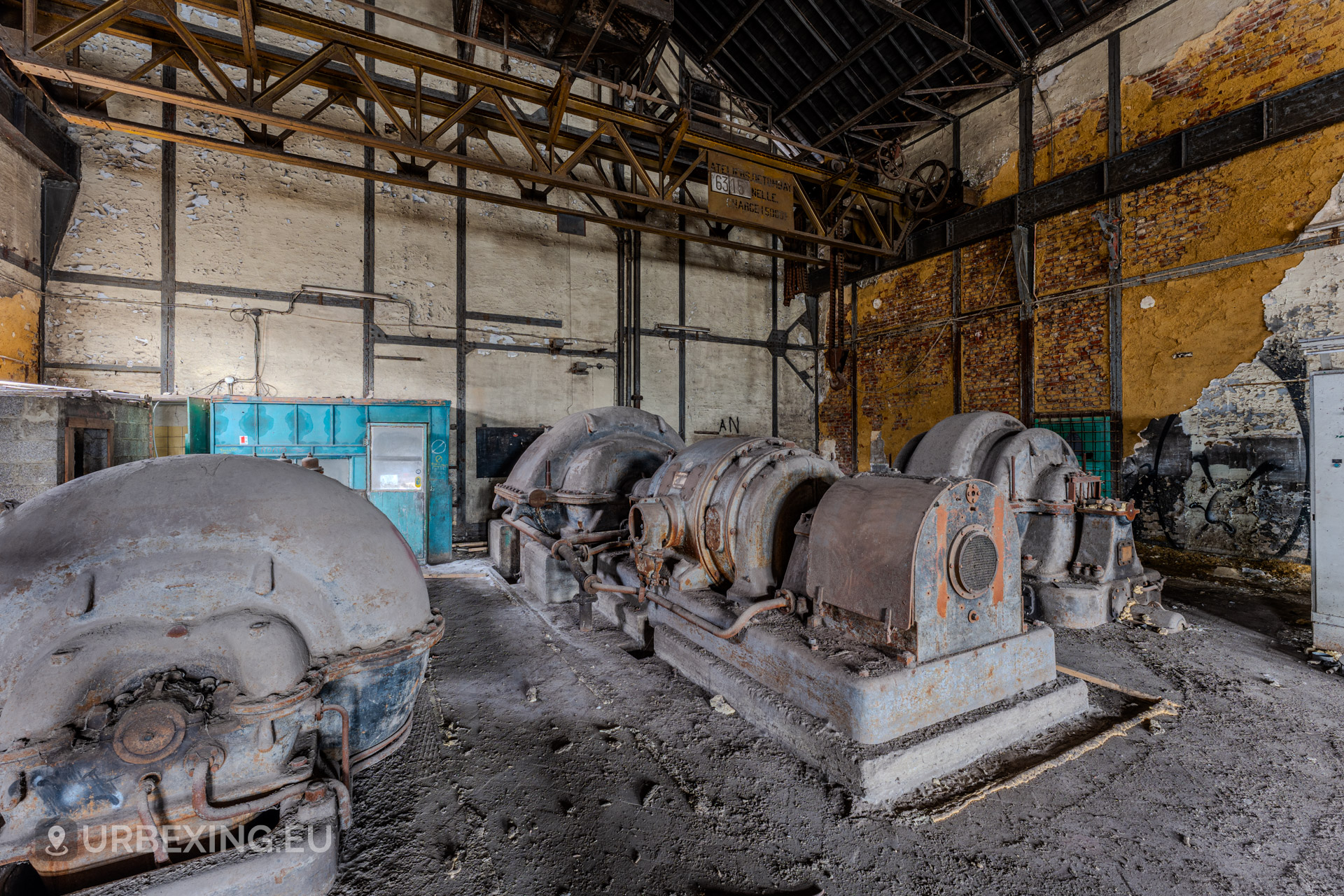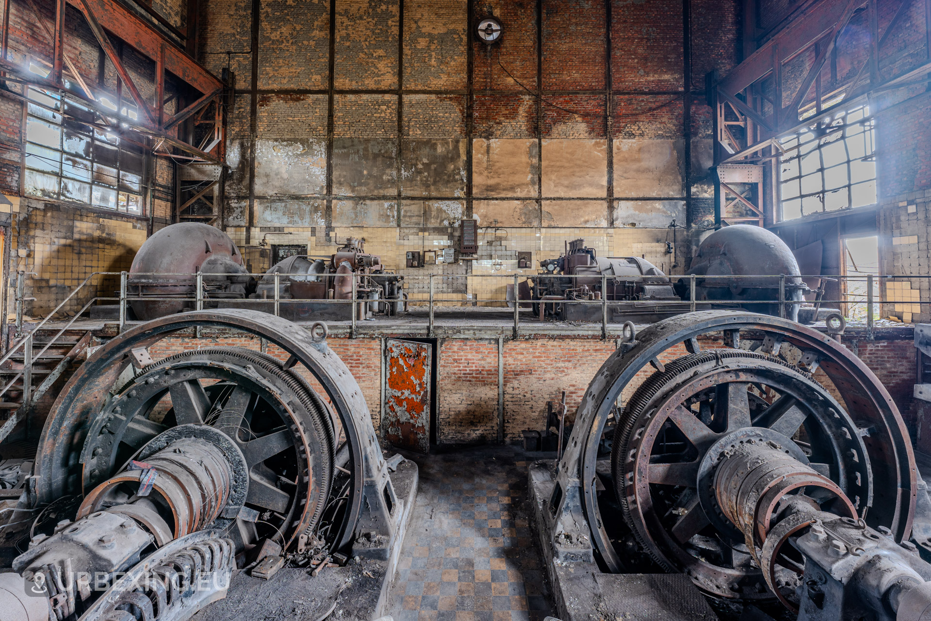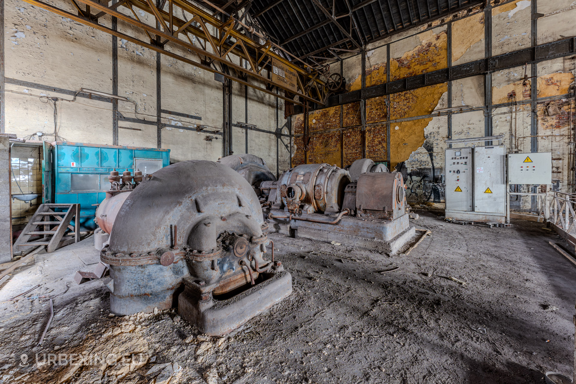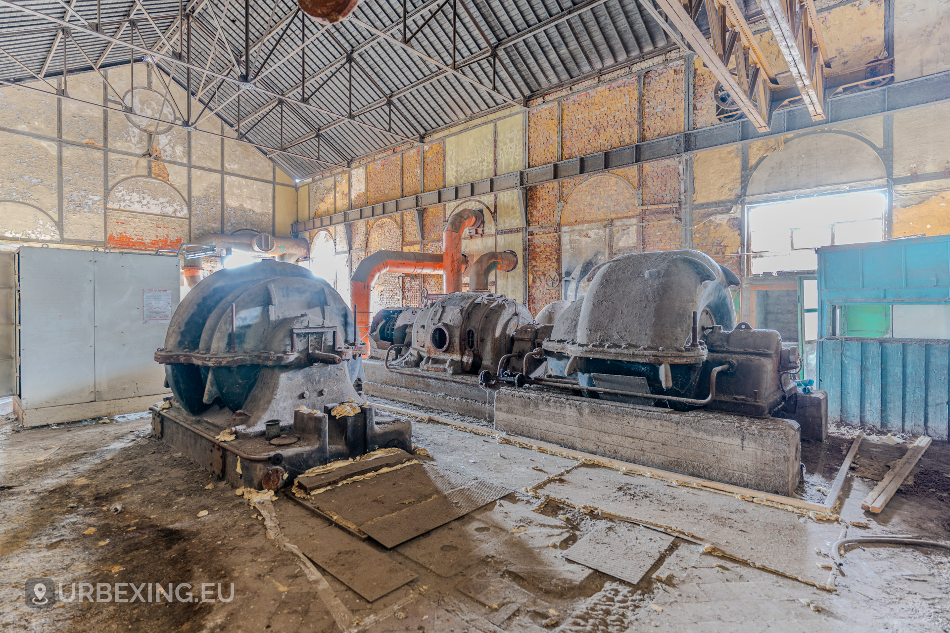 Entering the main hall feels like stepping back into the industrial age. Turbines still stand in place, their iron frames now heavy with rust and patina. Rare rotary converters; once critical for DC power generation; dominate the space, creating a steampunk-like atmosphere.