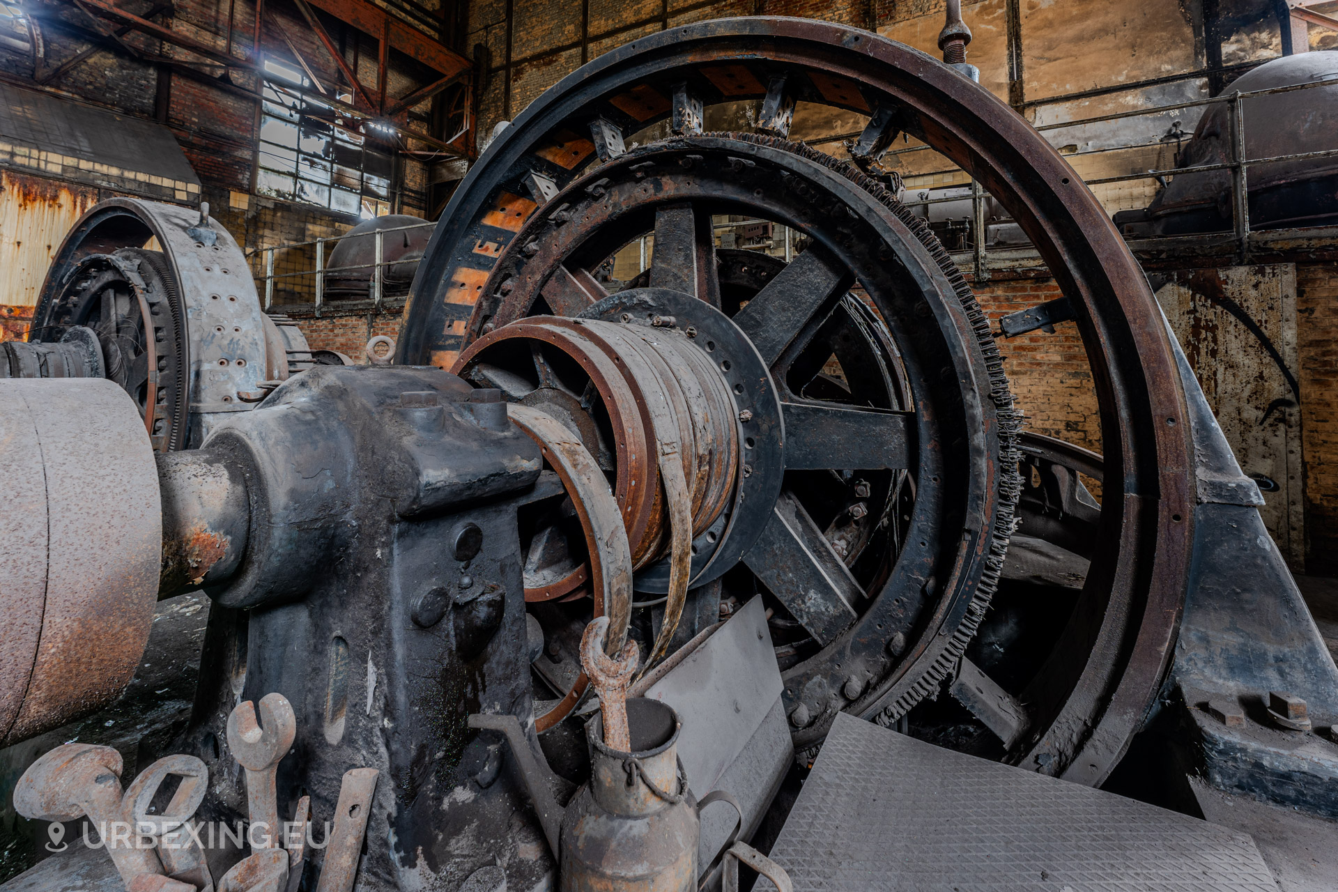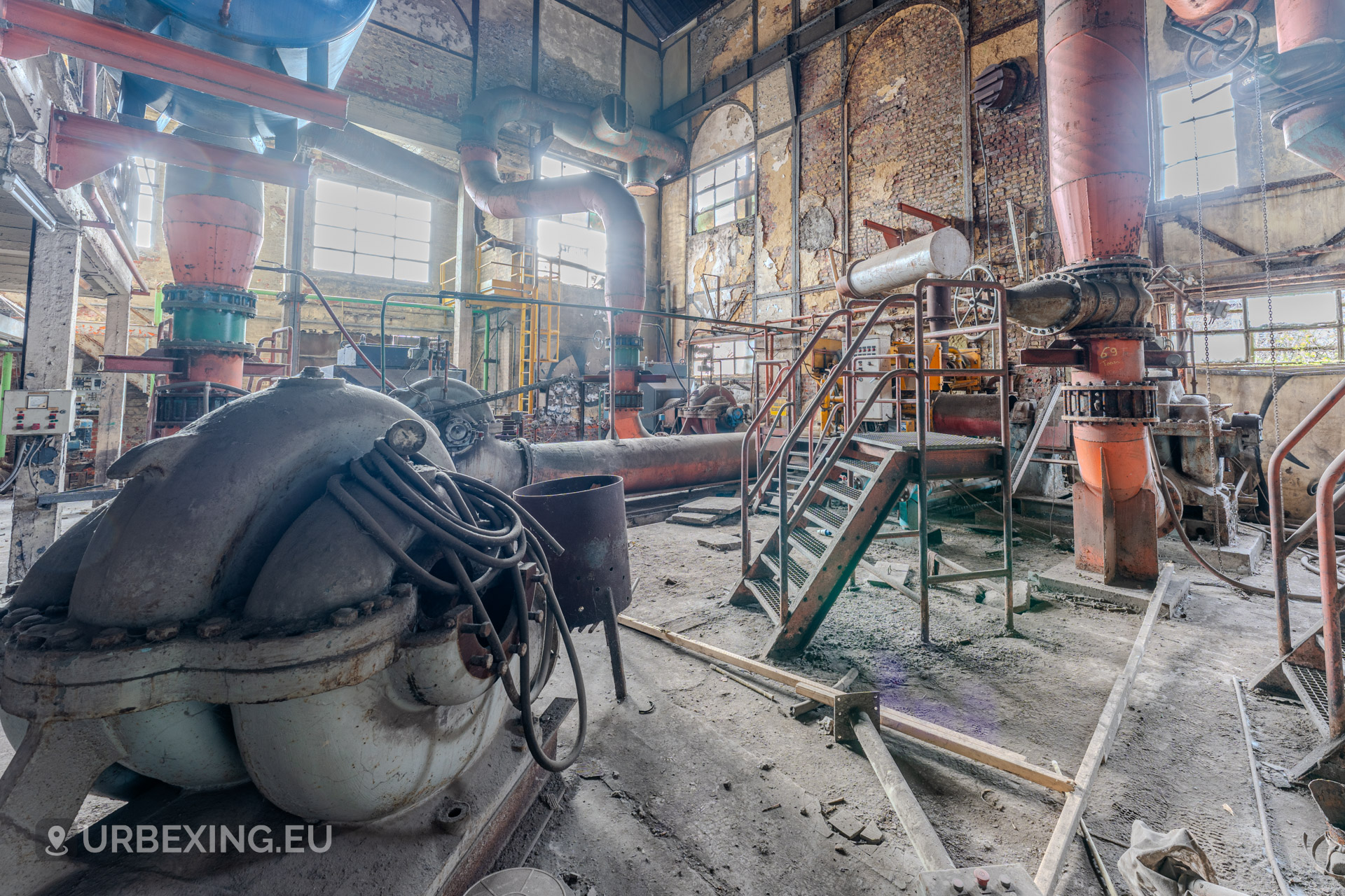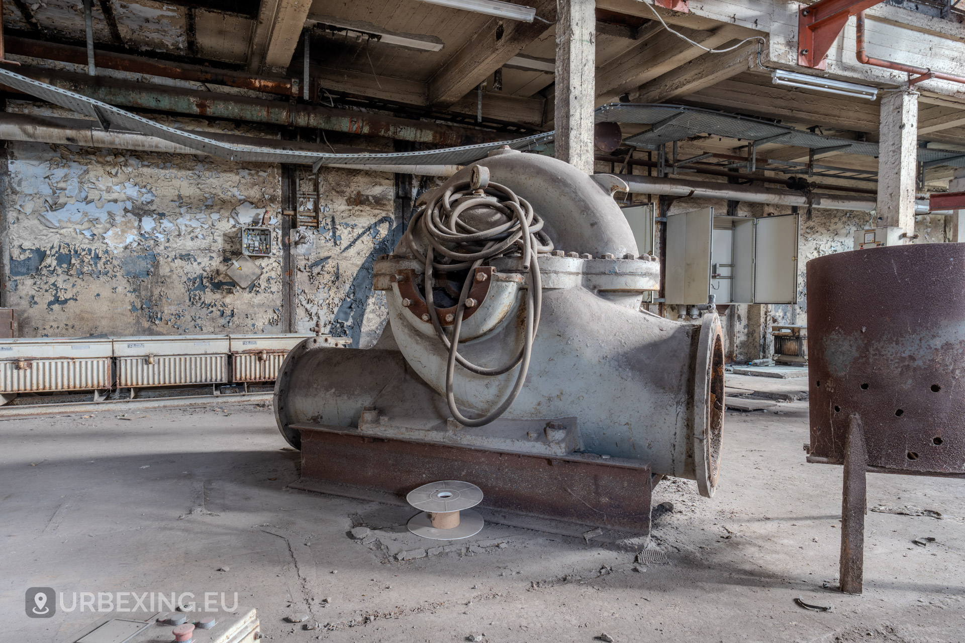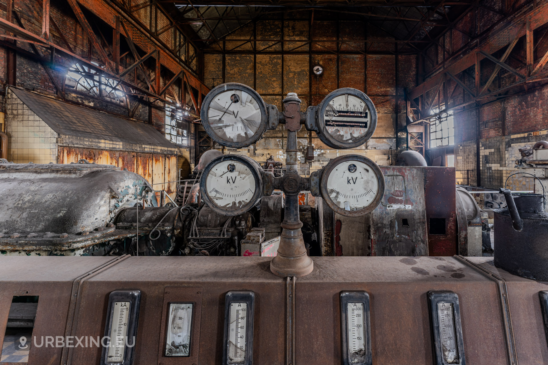 Entering the main hall feels like stepping back into the industrial age. Turbines still stand in place, their iron frames now heavy with rust and patina. Rare rotary converters; once critical for DC power generation; dominate the space, creating a steampunk-like atmosphere.