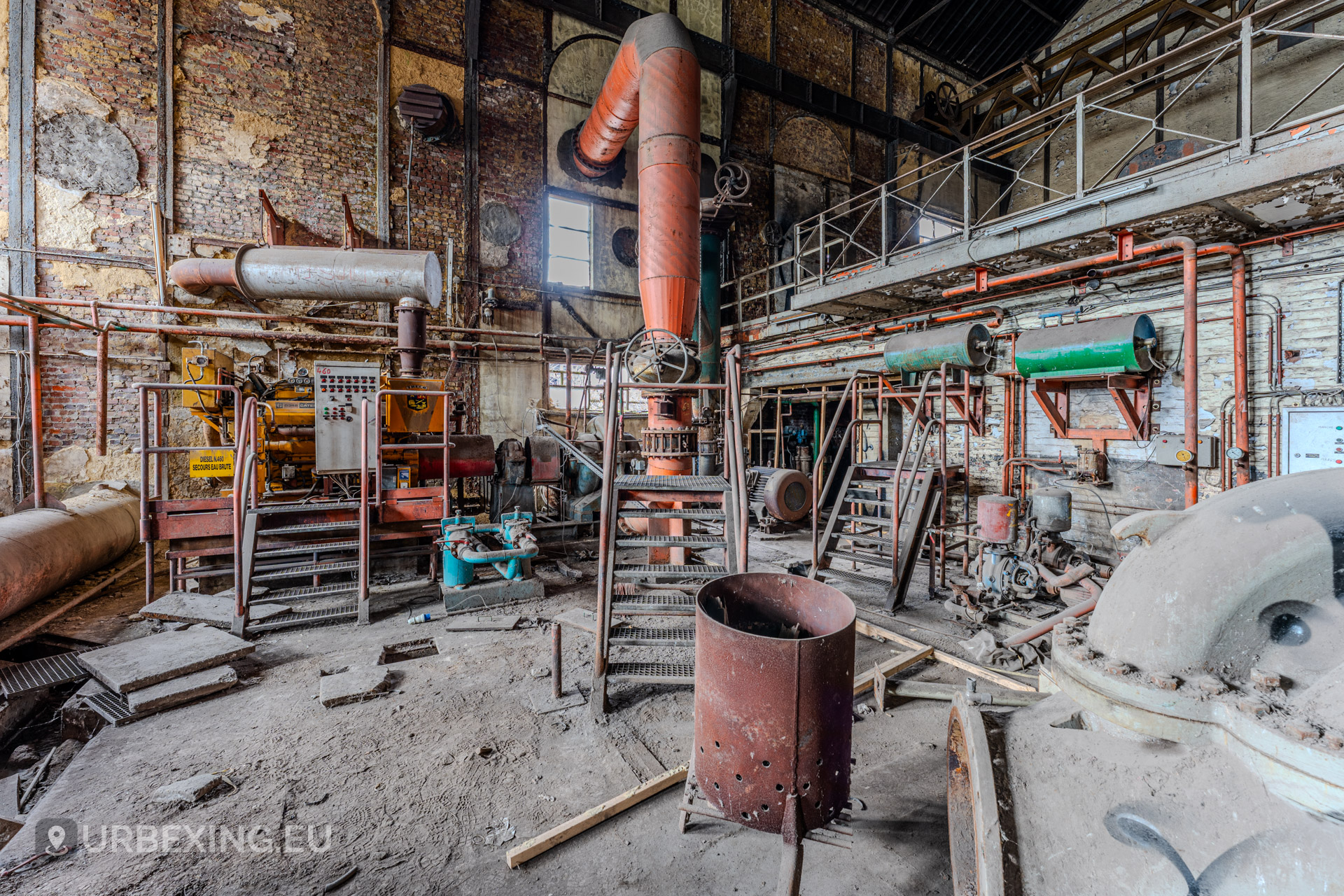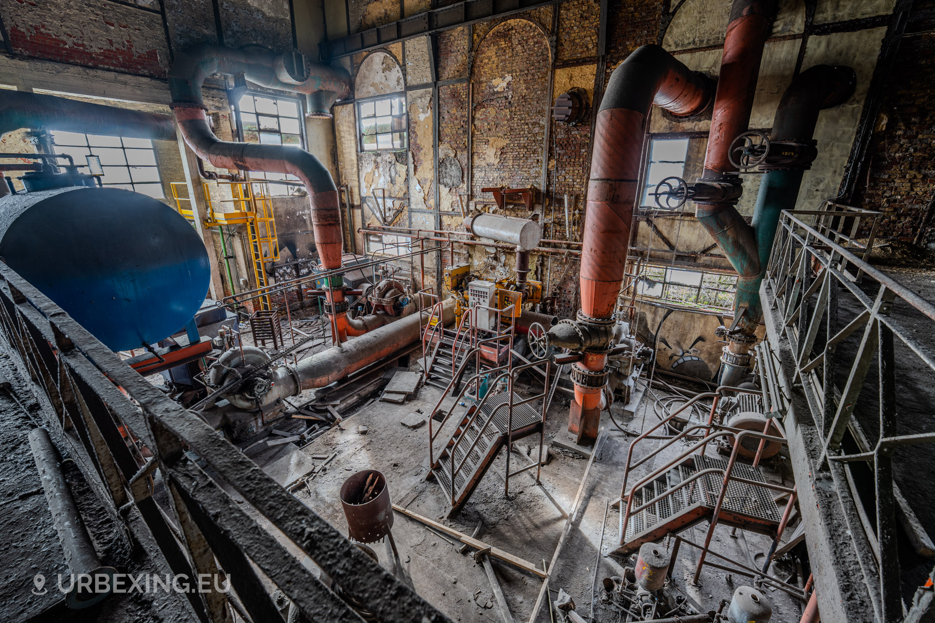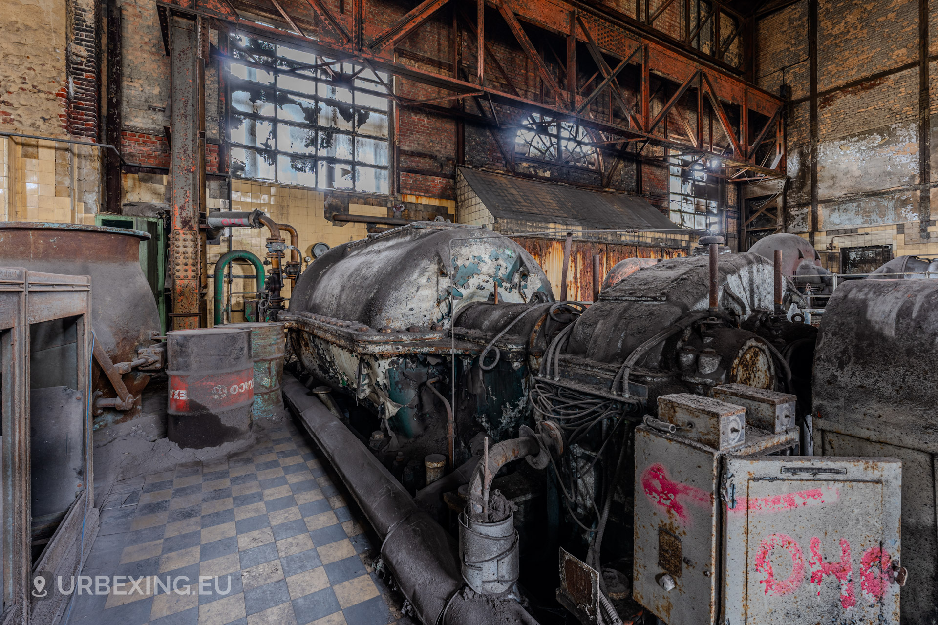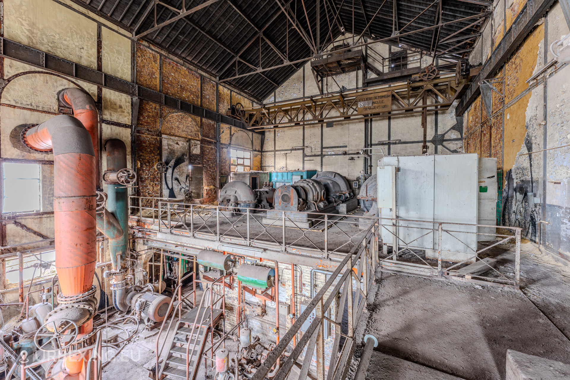 The Wet Dogs Power Plant was built to provide electricity and power for the large HF4 blast furnace and surrounding steelworks in Charleroi. It is one of the oldest facilities on the site, dating back to the early 1900s when steel production in Belgium was booming.