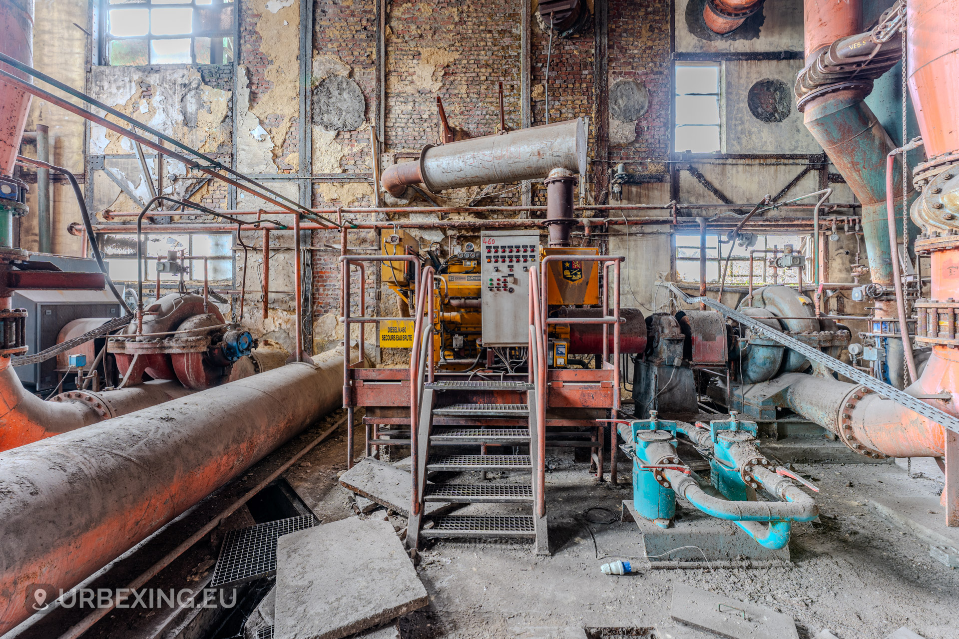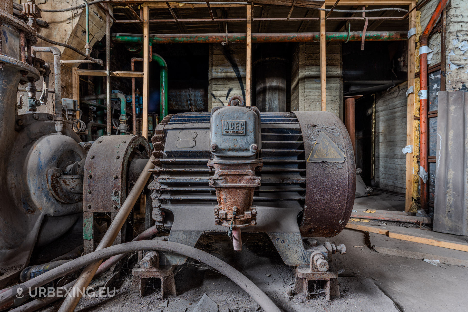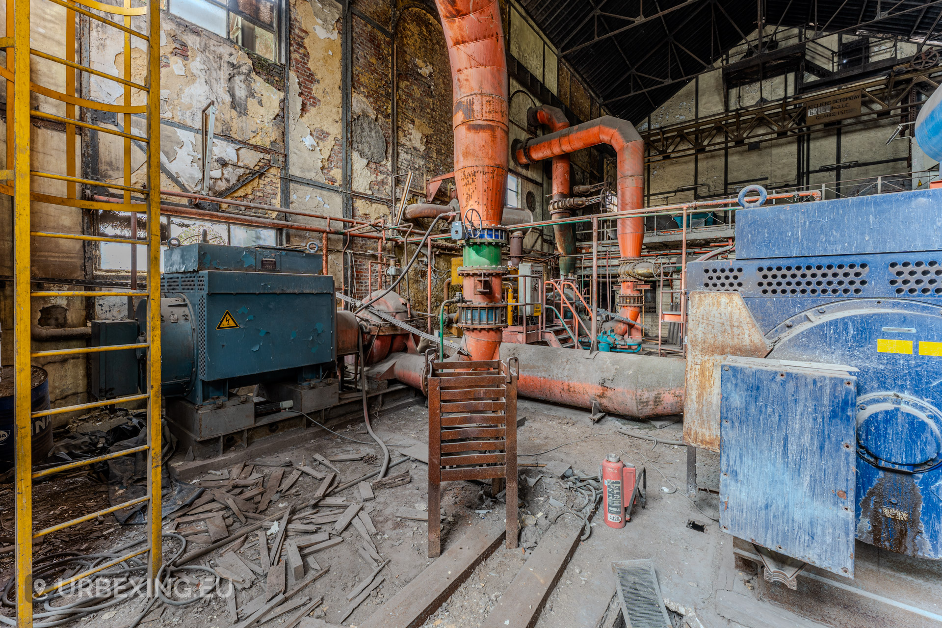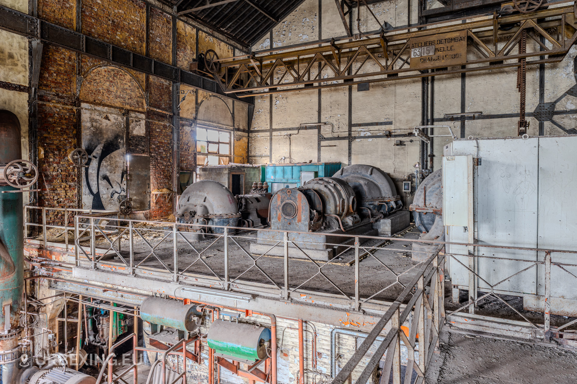 The Wet Dogs Power Plant was built to provide electricity and power for the large HF4 blast furnace and surrounding steelworks in Charleroi. It is one of the oldest facilities on the site, dating back to the early 1900s when steel production in Belgium was booming.